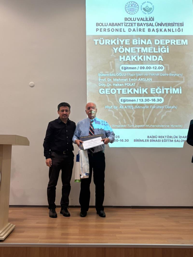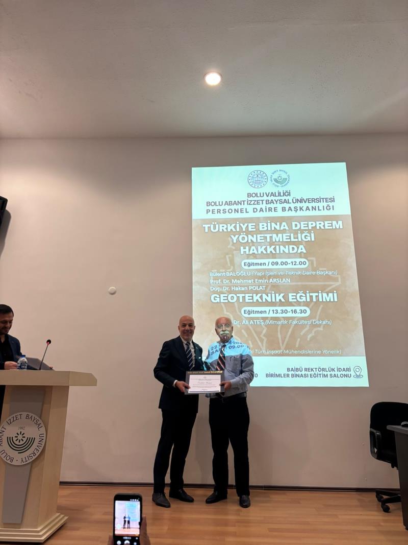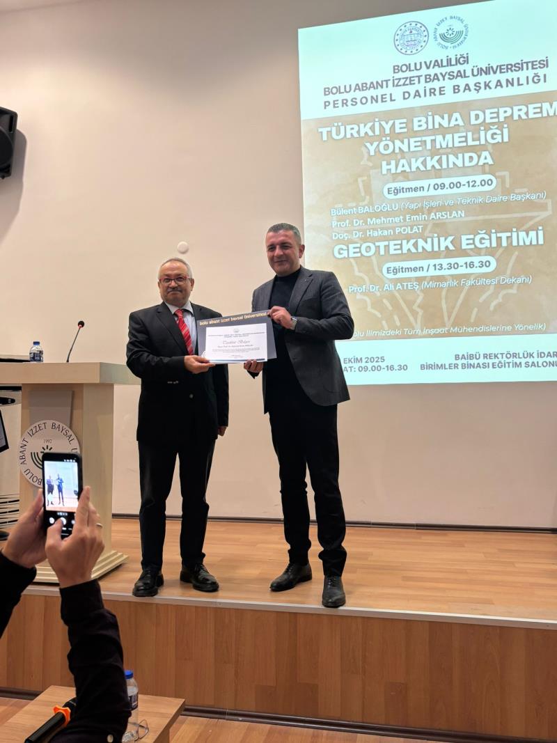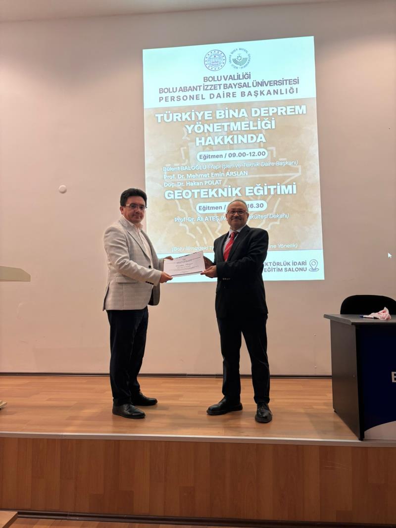 Üniversitemiz Personel Daire Başkanlığı Hizmet İçi Eğitim Şube Müdürlüğü tarafından, Bolu ilinde görev yapan İnşaat Mühendislerine yönelik “Türkiye Bina Deprem Yönetmeliği Hakkında” ve “Geoteknik Eğitimi” konulu kapsamlı hizmet içi eğitim programları düzenlendi.