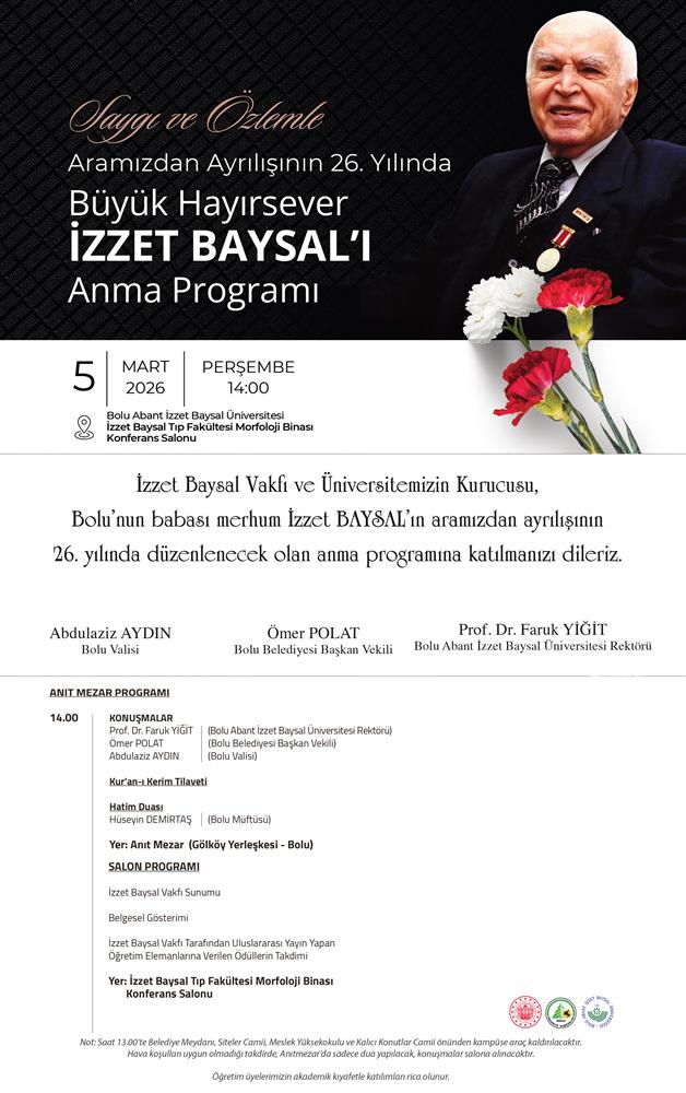 Aramızdan ayrılışının 26. yılında, Bolu’nun babası büyük hayırsever İzzet Baysal’ı saygı ve özlemle anıyoruz.